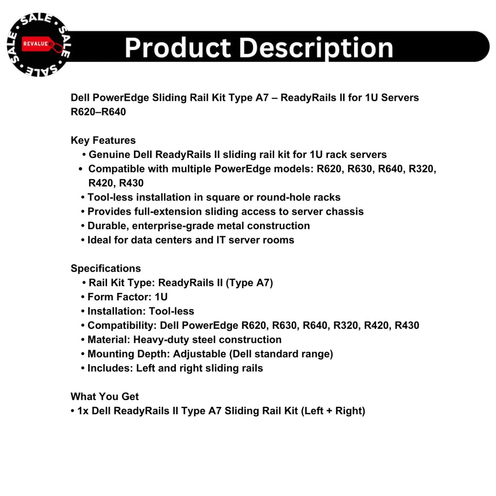Dell PowerEdge Sliding Rail Kit Type A7 – ReadyRails II for 1U Servers R620–R640