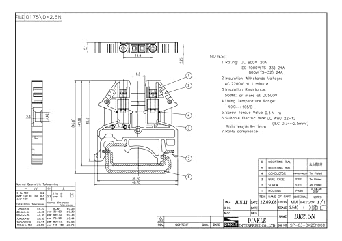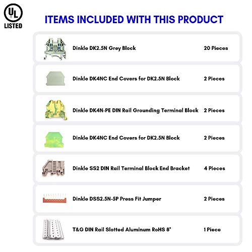 - UL 12-22 AWG Rating. Maximum compatibility: Dinkle Terminal Blocks can be attached to 35mm standard DIN rails, making it ideal for use in a wide range of control panels or DIY projects.