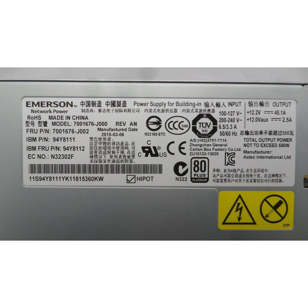 EMERSON System X3550 550W Power Supply 94Y8112 94Y8111 7001676-J002 7001676-J000