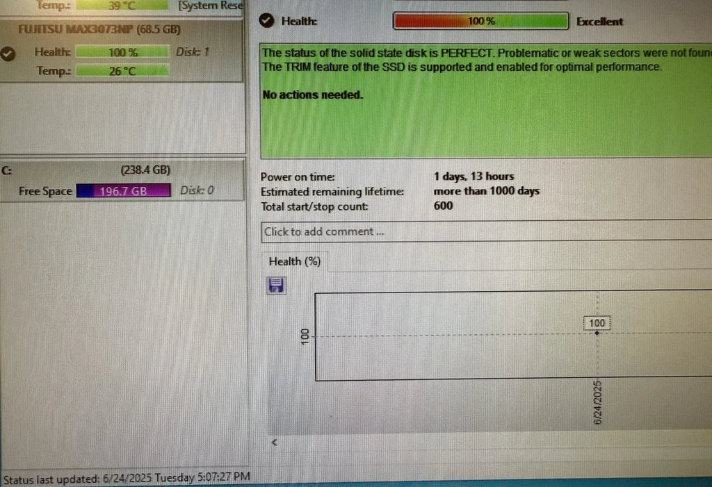 Fujitsu MAX3073NP 73GB 68 Pin 15K RPM Wide SCSI CA06560-B260 Low Power on Hours