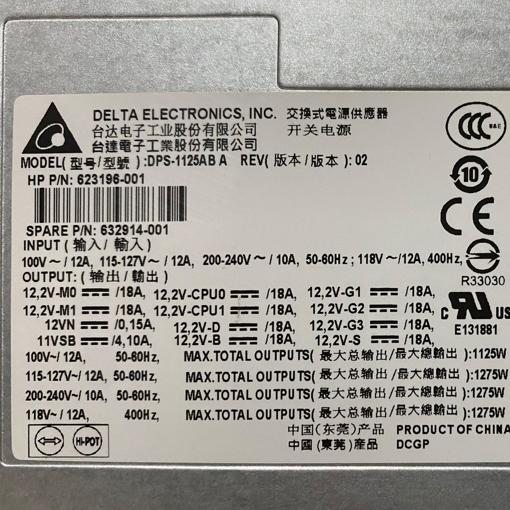 HP 632914-001 Z820 1125W Power Supply DPS-1125AB A 623196-001