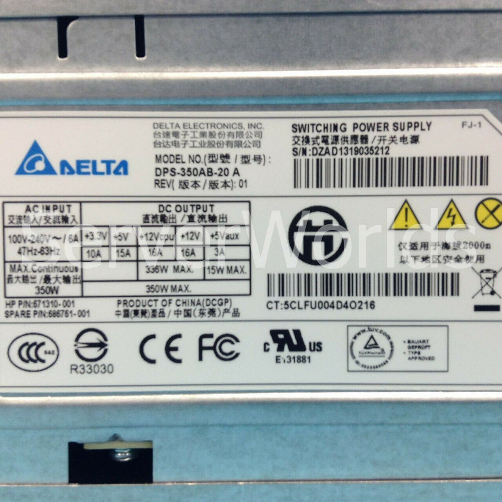 HP 686761-001 ML310E Gen8 350W Micro ATX Power Supply 671310-001 DPS-350AB-20 A