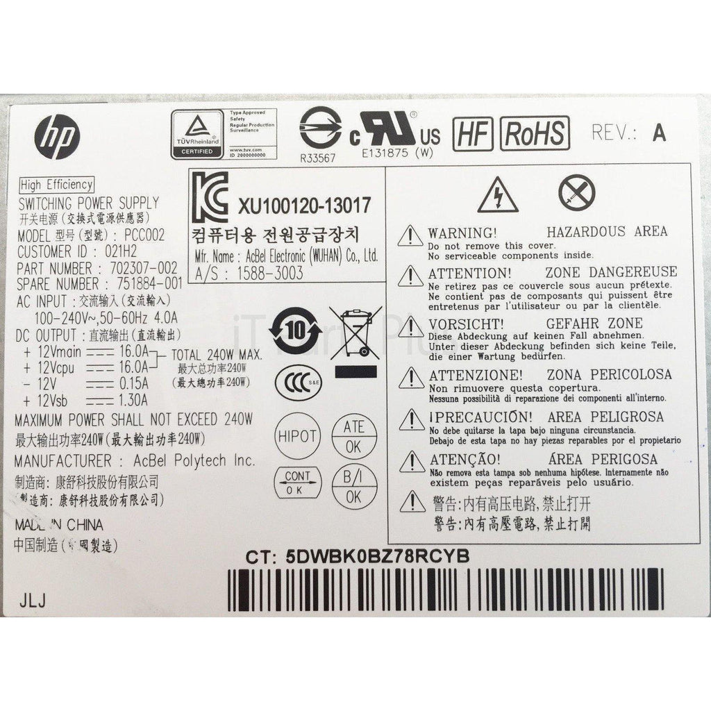 HP Elitedesk 600 800 G1 SFF Power Supply 240W 751884 751886 702307 702309-001
