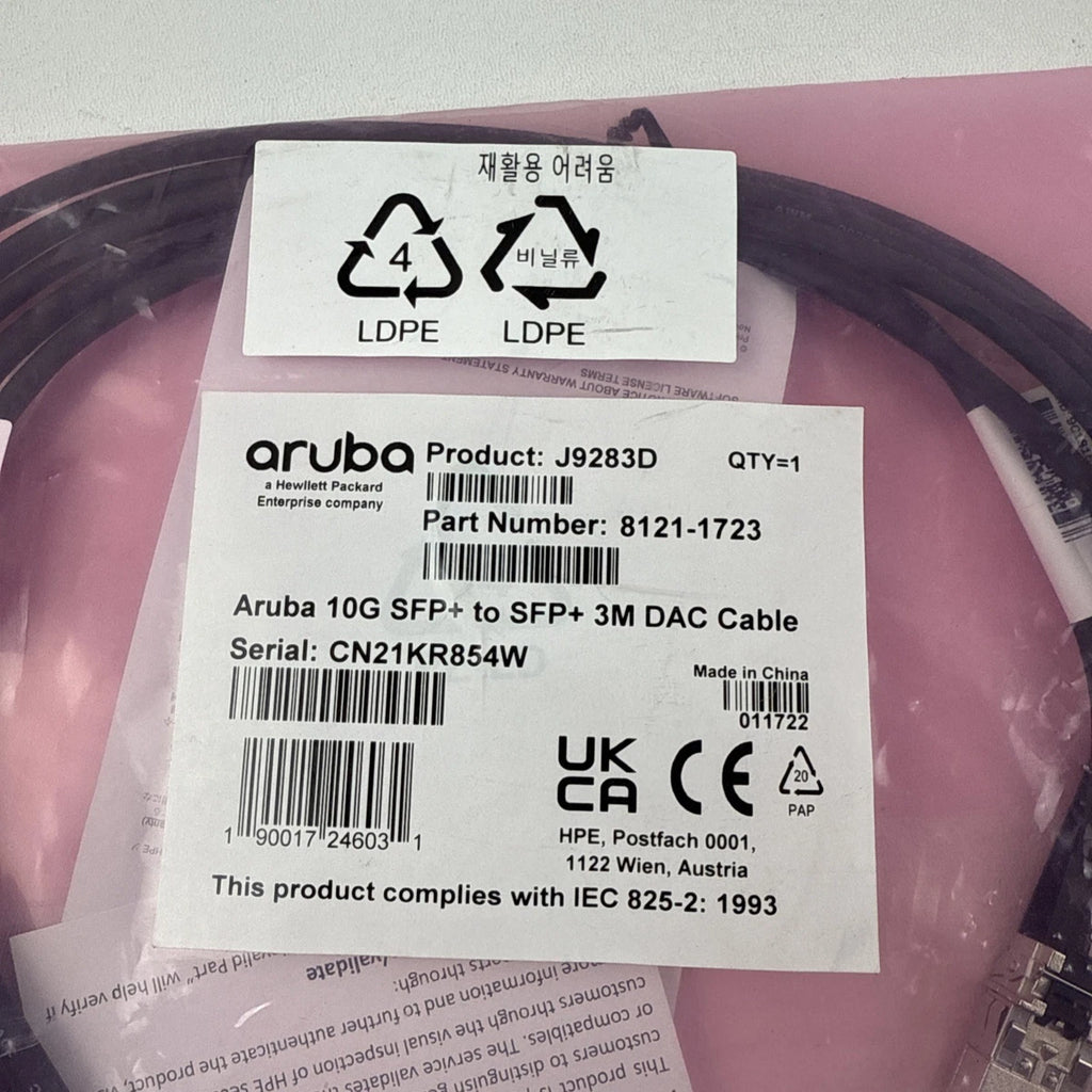 HPE Aruba J9283D 10G SFP+ to SFP+ 3m DAC Cable HP - NEW 9.8 Ft
