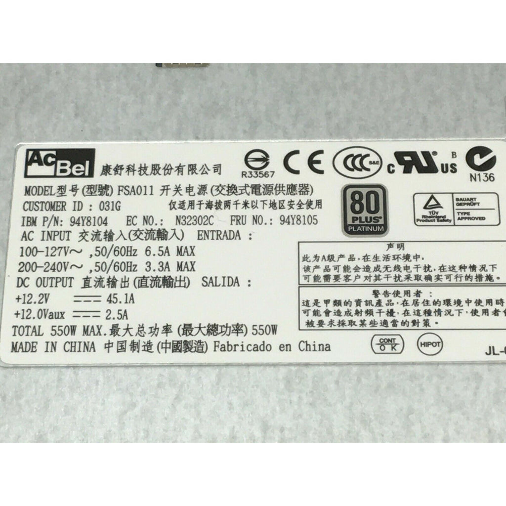 IBM 94Y8104 550W HIGH EFFICIENCY PLATINUM POWER SUPPLY 94Y8105 FSA011-031G