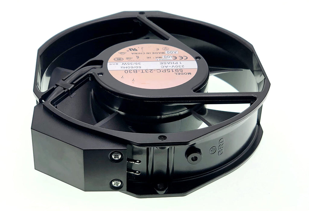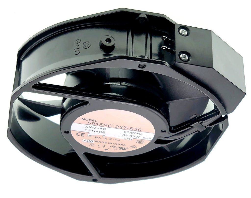 Minebea Aluminum Frame Cooling Fan for NMB 5915PC-23T-B30 A00,56 DBA,190 MA, Ball Bearing, 230~AC 50/60Hz 35W, Fan Frame Size: 172x150x38mm,2-pin.