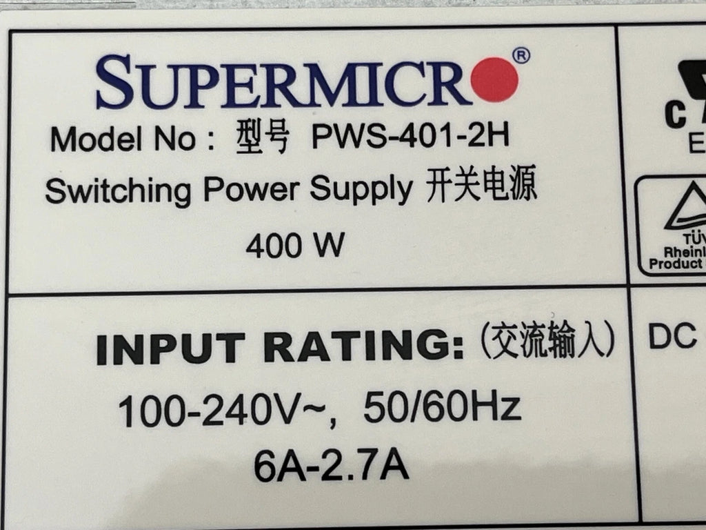Supermicro PWS-401-2H / 24-Pin 8-Pin 80 Plus 400WATT 2U