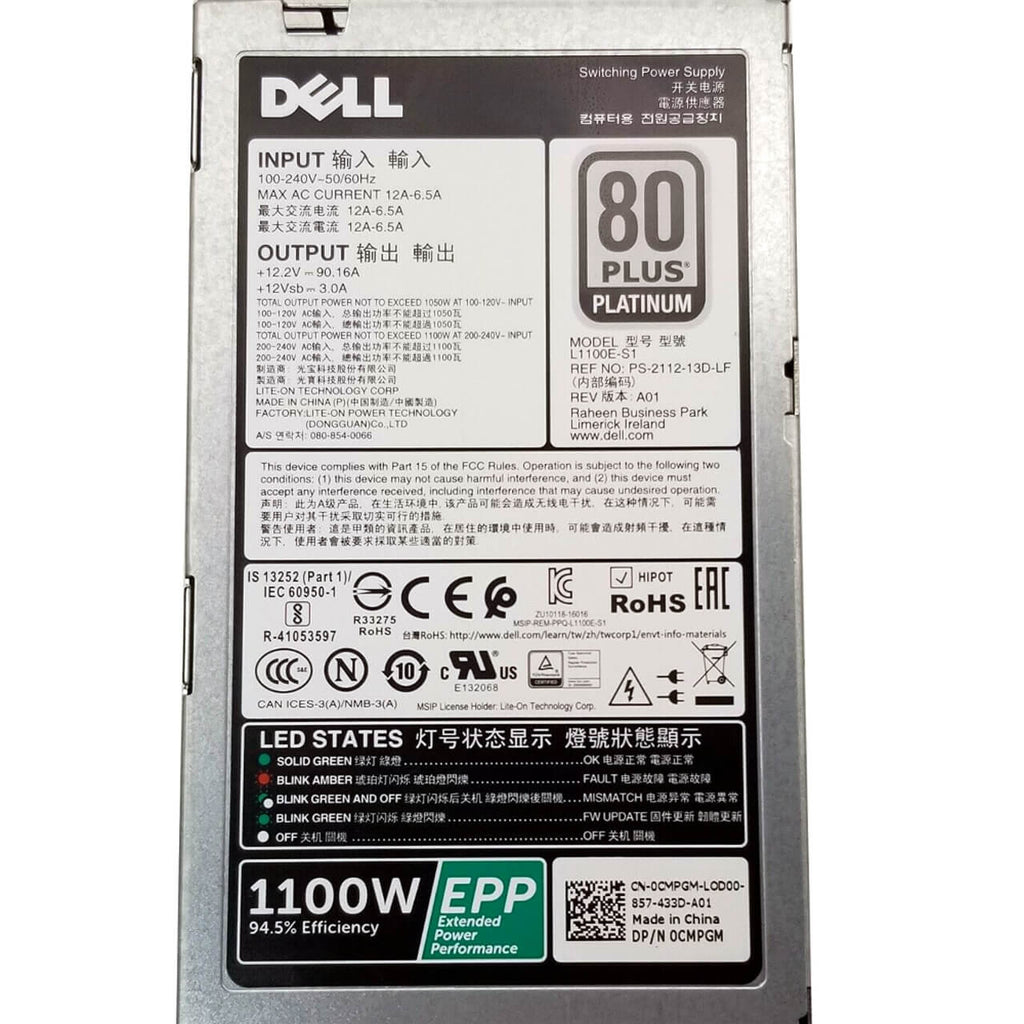 Dell - 1100W Power Supply - for PowerEdge R530 , R540 , R630 , R640 , R730 , R730XD , R740 , R740XD , R7425 , R830 , R840 , R930 , R940 , T430 , T440 , T630 , T640 , PRECISION RACK 7910 ( R7910 , 7920 ( R7920 , DL4300 (CMPGM